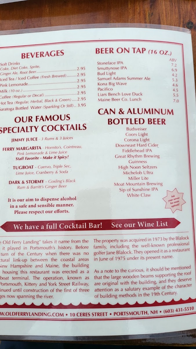 Welcome to Old Ferry Landing, a delightful culinary gem located at 10 Ceres St in Portsmouth, NH. This charming restaurant invites you to savor the best of New England flavors with an enticing menu that showcases the freshest local seafood.